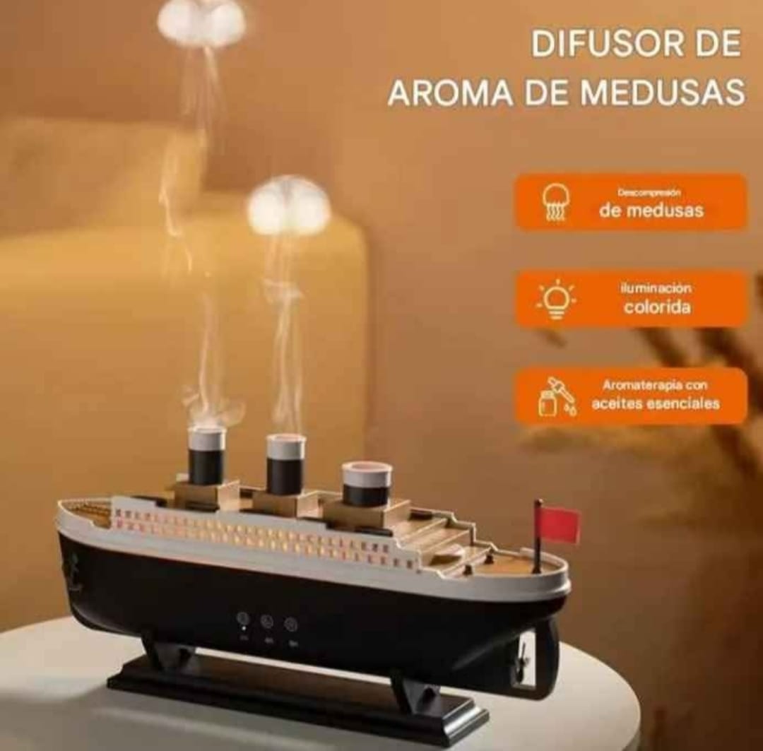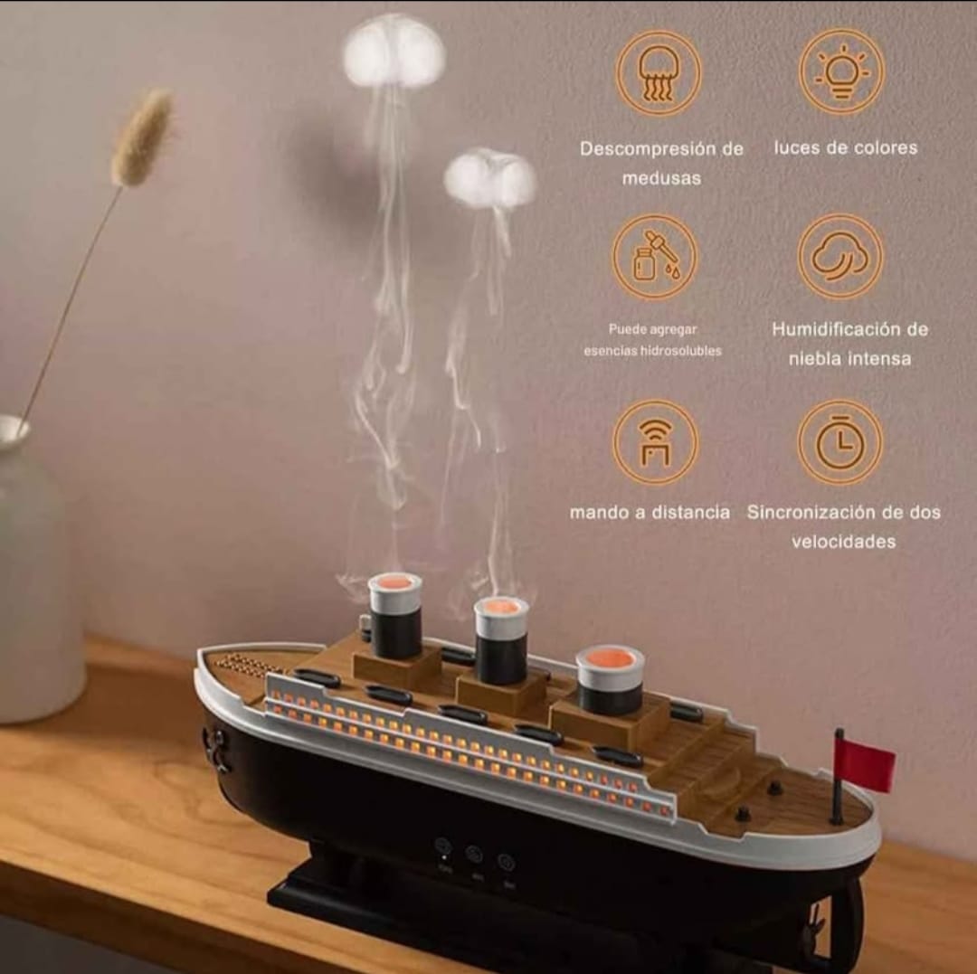 El kit trae: el humidificador Titanic, control remoto, cable USB de alimentación y manual de uso. ¡Listo para disfrutar desde el primer momento!